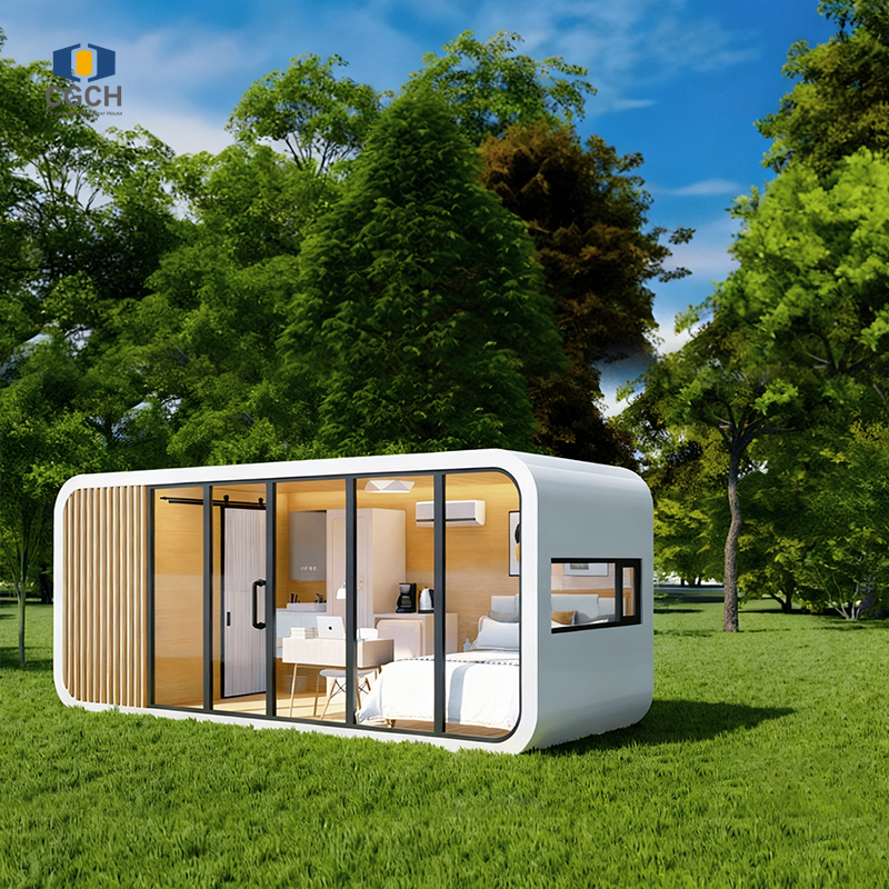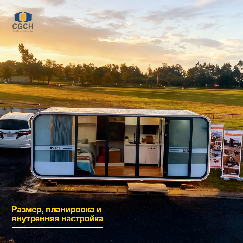 Сборная конструкция домика, монтаж которой занимает 48 часов, адаптируется к различным условиям окружающей среды, таким как живописные места, кемпинги, парки и т. д.